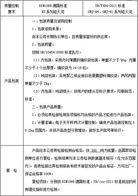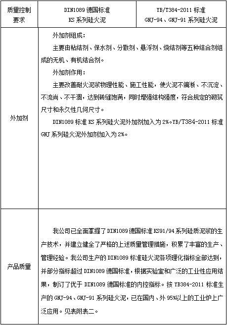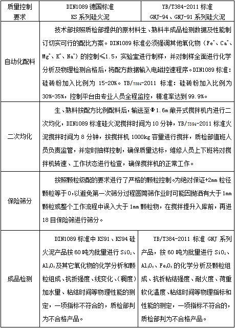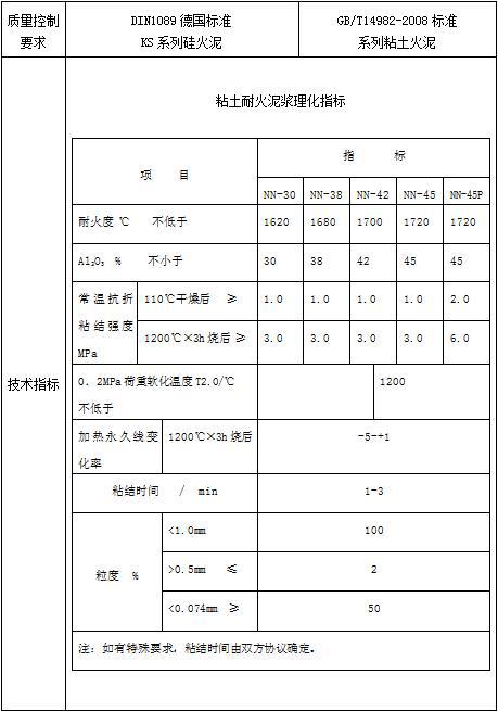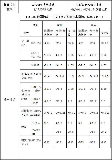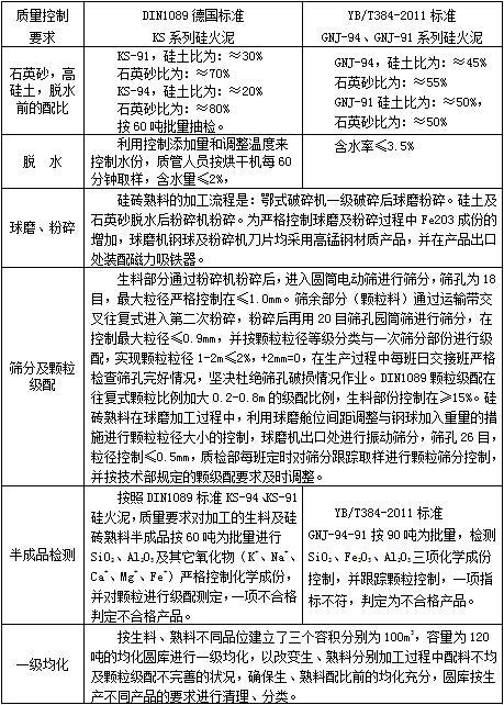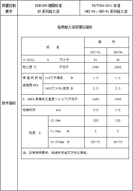 DIN1089德國標準 YB/T384-2011標準 GNJ-94、GNJ-91系列硅火泥質(zhì)量控制體系